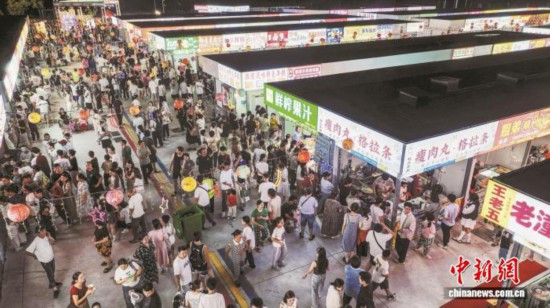 以前的体育路上,光是流动摊贩就有200多家。2024年,花山区采用“疏堵结合”的办法,在距离原小吃街百米远的地方找了块闲置地块改造成了如今的体育路夜市,让摊主终于有了“安稳的地方”。
