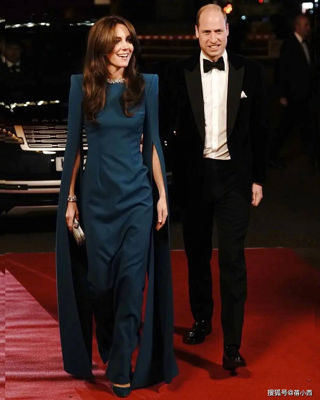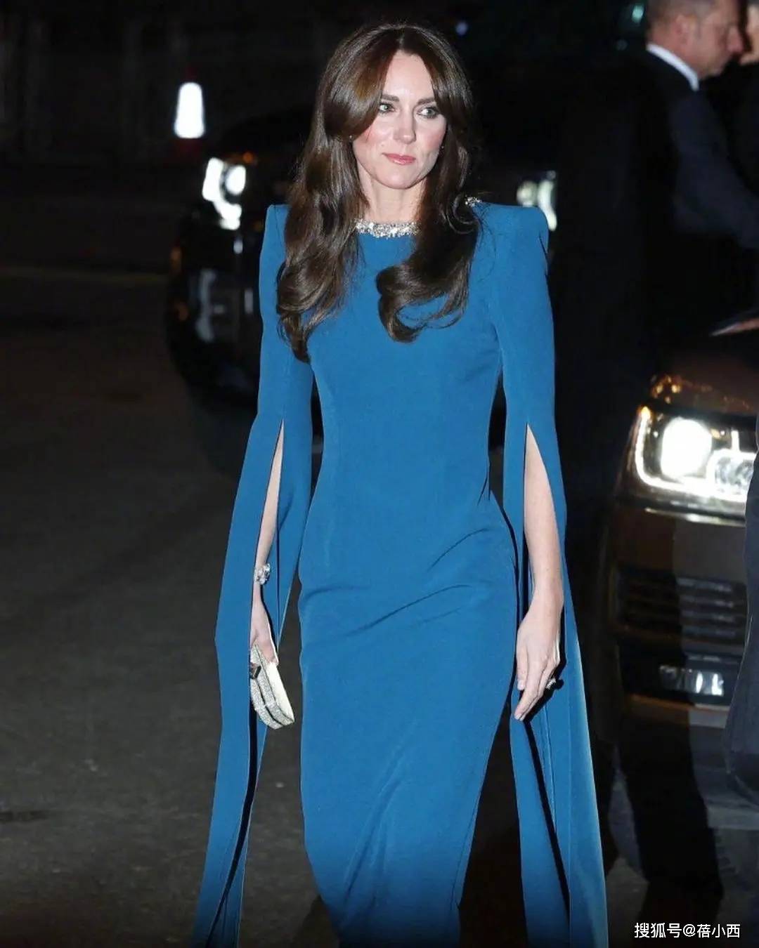 凯特王妃这次的造型并没有延续过去的端庄路线,而是选择了一款蓝色斗篷连衣裙。简约大气的设计,不仅提升了整体的时尚感,也展现了她独特的气质。她的这身波塞冬蓝礼服轻盈飘逸,走动之间,裙摆随风摇曳,散发出仙气十足的优雅感。蓝色的选择让她看起来更加高贵与清新,灯光下,整个造型格外璀璨。