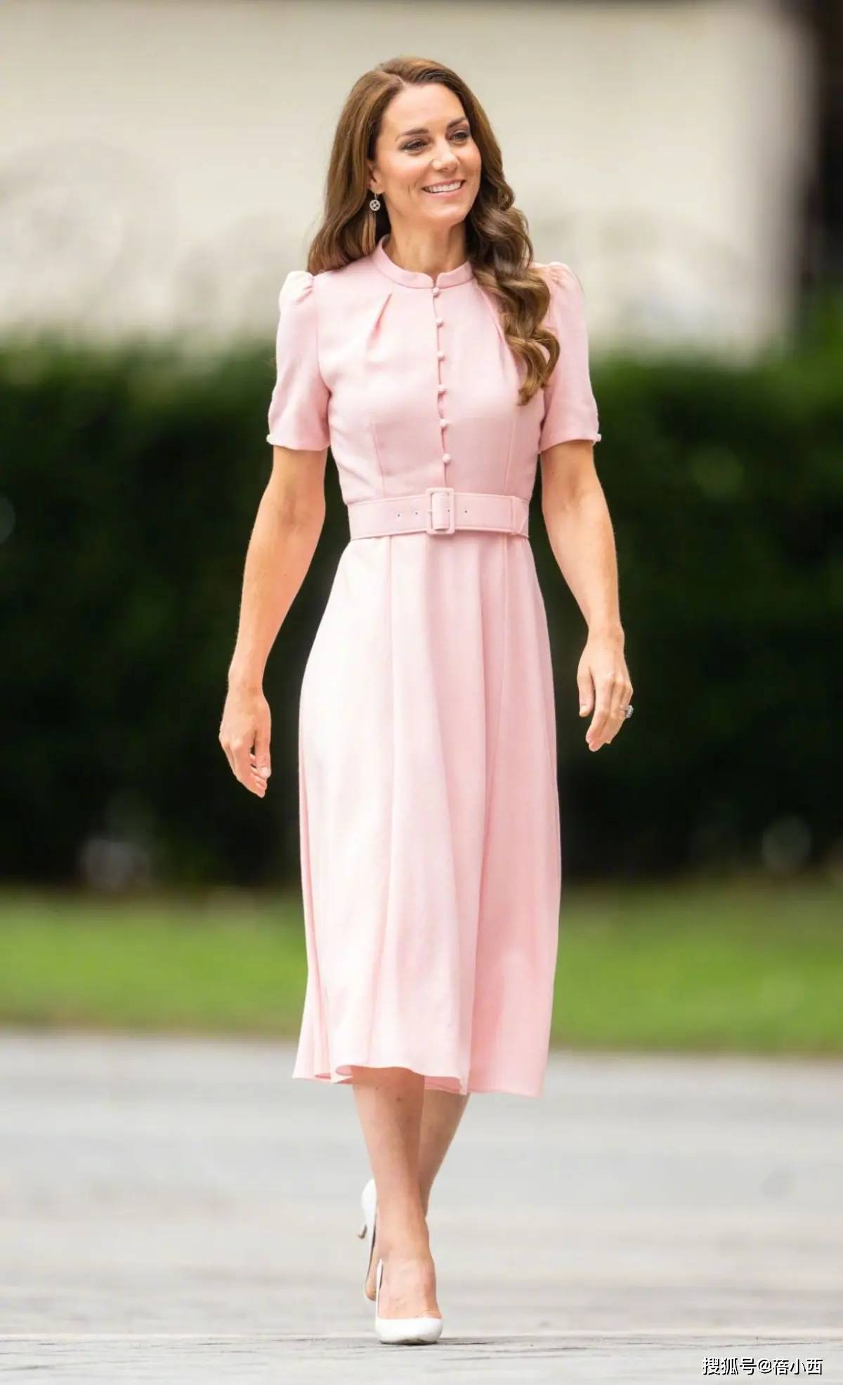 这条连衣裙的设计融合了长袖元素,袖长与裙摆长度几乎齐平,独特的袖型设计成为了整个造型的亮点。然而,这种设计对身材有一定要求,只有像凯特王妃这样高挑且气场强大的女性,才能完美驾驭。