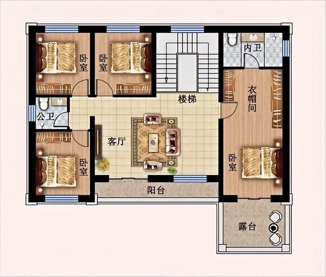 走上别墅的二楼居住区,右边是一间南北贯穿式的超大卧室,带独立内卫,衣帽间,卧室外边的露台则是欣赏乡村美景的绝佳位置,豪华舒适,尽显主人的尊贵与品味。中间是客厅,在这里,人们可以品茶聊天,享受悠闲的时光,是家人聚会、休闲娱乐的好去处。左边是三间卧室,温馨舒适,可以满足亲朋好友留宿需求。